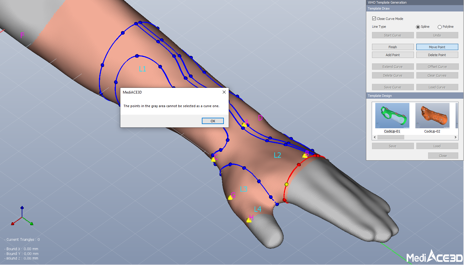 ※It is not possible to create a design curve that passes through the gray area shown in the standard hand model, and the system automatically prevents it.
